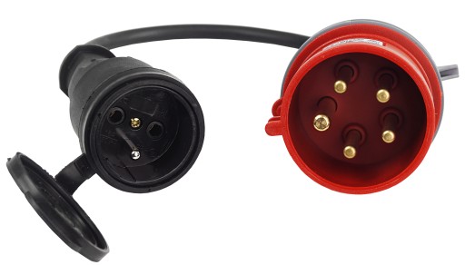 Adapter siłowy - redukcja z wtyku siłowego 16A 5P na gniazdo 230V 16A.
