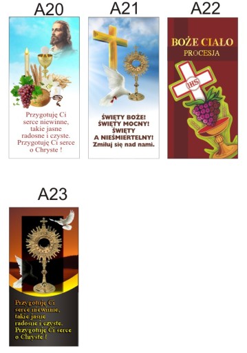 Banery drukowane w jakości fotograficznej - materiał baner frontlit. Nadają się idealnie do ołtarzy - dodadzą im uroku oraz piękna. Banery są zabezpieczone laminatem - nie ulegną porysowaniu i zostaną do wykorzystania na kolejne lata. Łatwy montaż dzięki oczkom co 50 cm. Istnieje możliwość oczkowania w innych odstępach lub można też zupełnie zrezygnować z oczek.