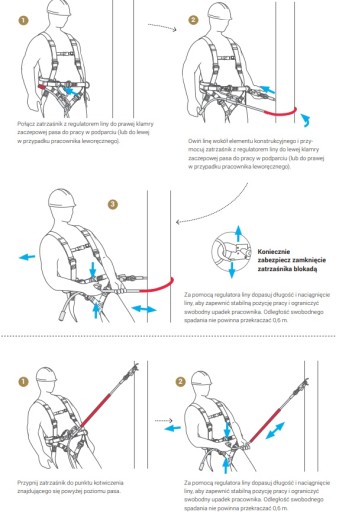 - Zakończenia liny: wolny koniec liny, kausza z zatrzaśnikiem