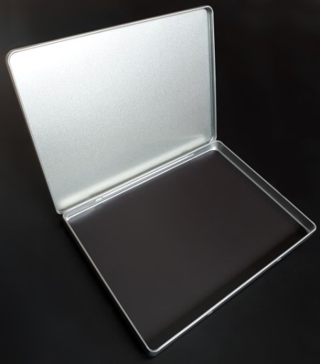 Pudełeczko wykonane jest z lekkiego metalu w kolorze srebrnym.