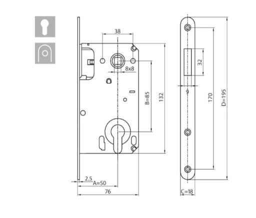 ЗАМОК ВРЕЗНЫЙ МАГНИТНЫЙ ДЛЯ ДВЕРЕЙ 85/50 ВСТАВКА
