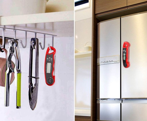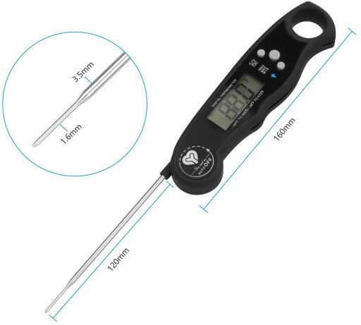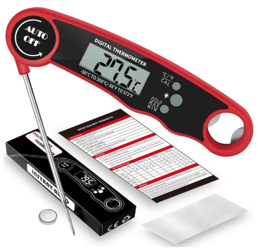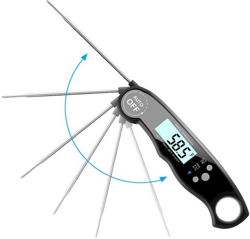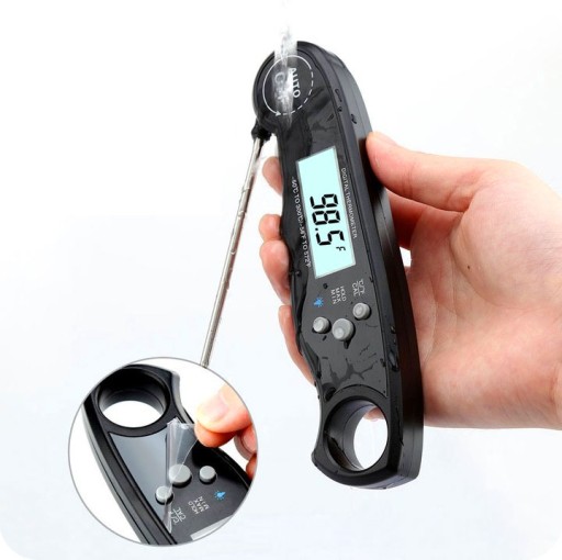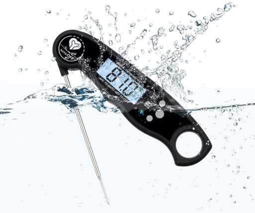 Wodoodporny cyfrowy termometr spożywczy z podświetlaniem, magnesem i składaną sondą.
