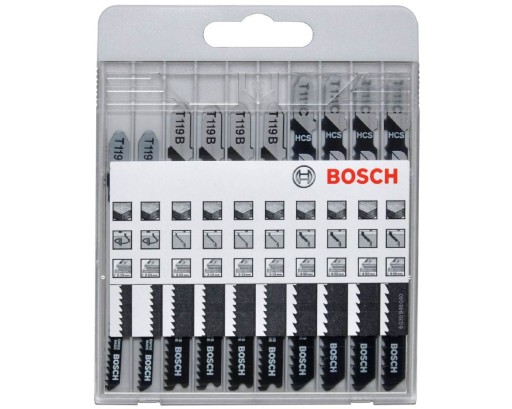 Komplet 10 profesjonalnych brzeszczotów firmy BOSCH w specjalnej kasecie z tworzywa sztucznego w wyposażeniu oferowanej wyrzynarki.