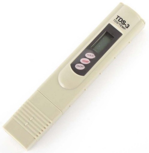 Miernik TDS-3 jest urządzeniem przeznaczonym do pomiaru całkowitej ilości wszelkich rozpuszczonych w wodzie substancji oraz temperatury. Wynik wskazuje w jednostkach ppm czyli parts per million. Inaczej ppm jest to 1 mg. zanieczyszczeń na 1 dm3 czystej wody.