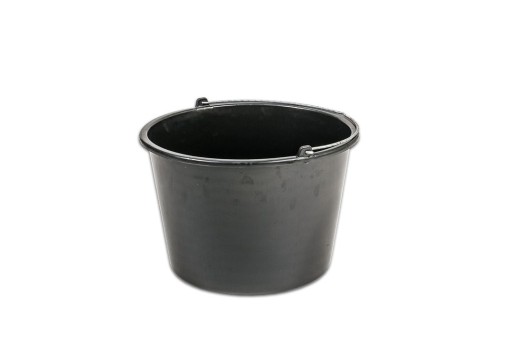 Wiadro budowlane wykonane zostało z wytrzymałego plastiku i posiada druciany uchwyt ułatwiający transportowanie.