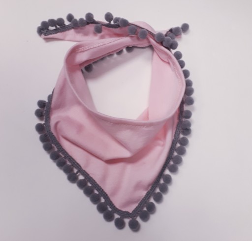 - Chustka dziecięca z pomponami. Chustka w kształcie trójkąta do wiązania pod szyją. Modna i efektowna. Wykonana z jednej warstwy materiału. Doskonale chroni przed chłodem i fantastycznie wygląda.