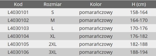 Tabela z rozmiarami dla lepszego doboru odzieży