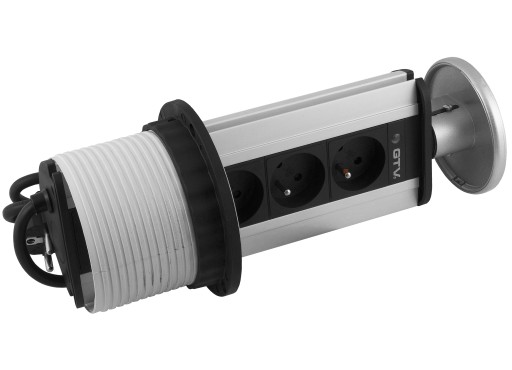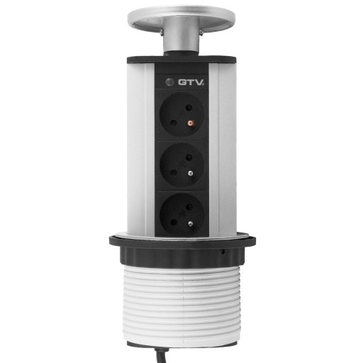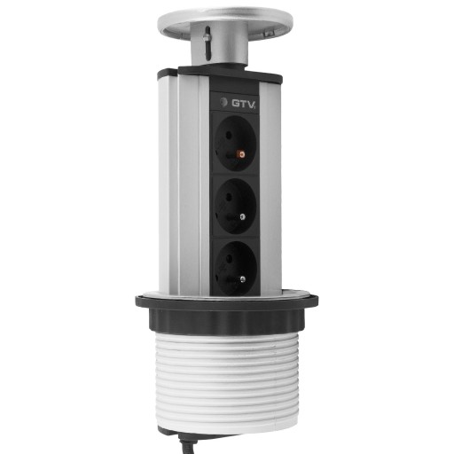 Przedłużacz biurkowy z miejscem na trzy wtyczki, chowany w blat biurka lub stołu. Wysokiej klasy produkt z zabezpieczeniem antyprzepięciowym oraz przed przegrzaniem. Nowoczesne rozwiązanie pozwala na schowanie gniazdek oraz kabli pod blatem. Dzięki systemowi "PUSH TO OPEN" panel z łatwością można schować lub wysunąć w zależności od potrzeb. Urządzenie posiada blokadę uniemożliwiająca samoczynne schowanie się kolumny. Wysokiej jakości przedłużacz biurkowy. Produkt polskiego producenta GTV.