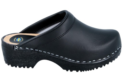 Solidne, ortopedyczne chodaki z naturalnej skóry, na spodach poliuretanowych (guma PU) z wkładką drewnianą