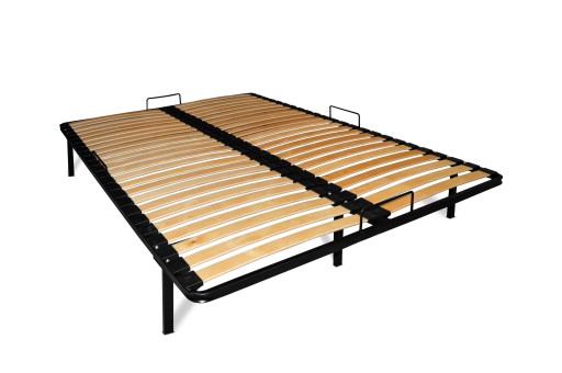 Elastyczny stelaż pod materac (wkład do łóżka, dostawka hotelowa)! Stelaż wykonany jest z profilu 20x30x2, malowany w kolorze czarnym. Wypełniony jest on profilowanymi listwami brzozowymi o szerokości 53mm, które są zakotwiczone w ramie ruchomymi końcówkami z tworzywa sztucznego. Stelaż posiada 38 elastycznych listew osadzonych w kauczukowych uchwytach zapewniających doskonałe podparcie oraz amortyzację materacowi. Stelaż wyposażony jest w 6 nóżki stalowe wykonane z profilu 20x30x2, które zakończone są plastikowymi końcówkami, górna część nóżki przykręcana jest do stelaża za pomocą śrub. Standardowa wysokość stelaża to 30cm, ale istnieje możliwość wykonania dowolnej wysokości stelaża za dopłatą. Dostawka posiada specjalne ramki podtrzymujące materac, dzięki nim materac nie zsunie się z łóżka. Stelaże te można wykorzystywać jako samodzielne łóżko do spania, dostawki hotelowe lub stałe wkłady do skrzyni.
