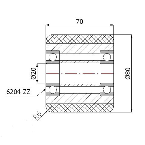 Rolka do wózków paletowych składa się z aluminiowego korpusu trwale połączonego z bieżnią z pełnej gumy. Charakteryzuje się bardzo wysokim komforcie jazdy i niewielkim oporze toczenia. Zastosowanie podwójnego łożyska kulkowego (najlepszego w swojej klasie) zapewnia łatwe toczenie rolek i jest gwarancją, że otwór nie ulegnie wyrobieniu.