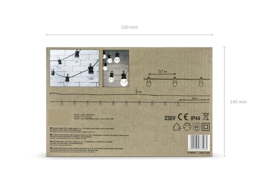 Długość przewodu z lampkami ok. 5 m, dodatkowy przewód ok. 3 m.