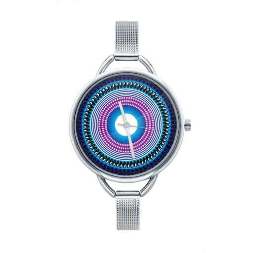Stylowy zegarek wykonany ze stali nierdzewnej w kolorze srebrnym z wysokiej jakości grafiką wklejaną na tarczę. Zegarek posiada japoński precyzyjny mechanizm kwarcowy oraz wymienną baterię.