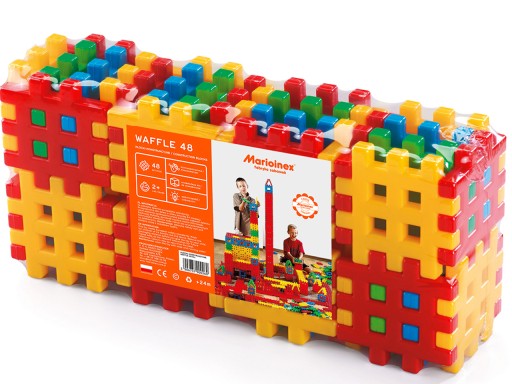 Zestaw składa się z 48 klocków. Waffle występują w różnych kolorach.
