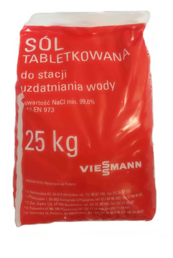 Zależnie od dostawy do nas - sól może być zapakowana w czerwony lub biały FIRMOWY worek foliowy. Zawsze jest to oryginalna sól od firmy VIESSMANN.