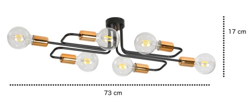 - Lampa jest wysoka na 17 cm i szeroka na 73 cm ( bez żarówek )