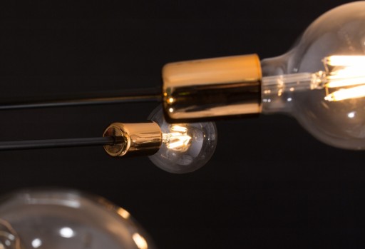 - Najbardziej efektownie wygląda zawieszona nad stołem lub wyspą. Wprowadza niepowtarzalny nastrój w pomieszczeniu dzięki światłu które jest dekoracyjnie rozproszone, przy czym otwarte żarówki dają dużą ilość światła. Miedziane elementy lampy jak lustro odbijają każdy szczegół, a łatwy i szybki montaż nie sprawi Ci problemu. Zastosowana oprawka E27 umożliwia szeroki wybór żarówek i jest przystosowana na LED. Prezentowana lampa posiada miejsce na sześć źródeł światła.