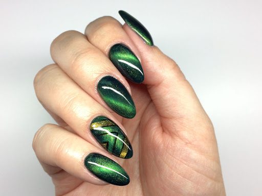 3. Nałóż drugą warstwę wybranego magnetycznego lakieru, a następnie zachowując 2-3 mm odstępu od paznokcia przyłóż magnes i przytrzymaj go około 20-30 sekund. (pamiętaj, żeby nie dotknąć paznokcia magnetyzerem)