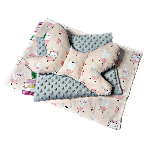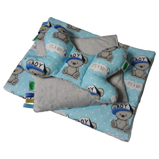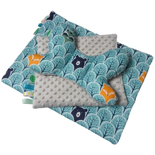 Na życzenie możemy wszyć metki sensoryczne. Maluch ma zawsze w zasięgu rączek coś, na czym może skupić swoją uwagę. Kocyk może pełnić również rolę maty do zabawy (prosimy o informację po zakupie).