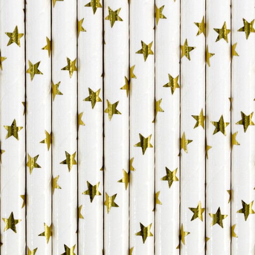 SŁOMKI PAPIEROWE BIAŁE W ZŁOTE GWIAZDKI
