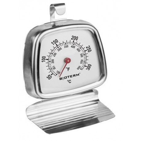 Termometr można postawić lub zawiesić wewnątrz piekarnika. Urządzenie ma również dużą, czytelną białą tarczę. Podczas pomiaru tolerancja błędu wynosi ok +/- 5°C. Sprzęt posiada atest PZH.