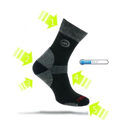 COOLMAX – włókno , które zapewnia odpowiednią cyrkulacje powietrza i odprowadzanie wilgoci na zew.