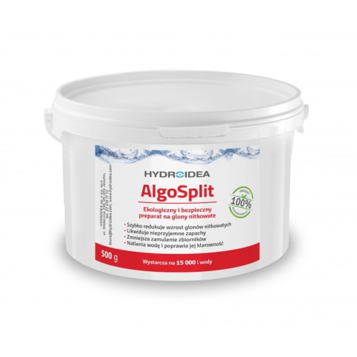 AlgoSplit to preparat w granulkach, bazujący na nadtlenku wodoru, który po zetknięciu z wodą rozkłada się na wodę i tlen. Dzięki natychmiastowemu uwolnieniu aktywnego tlenu szybko redukuje nawet najbardziej uciążliwe glony nitkowate, wypychając je ku powierzchni lustra wody. Glony zgromadzone pod powierzchnią wody można łatwo usunąć np. podbierakiem, natomiast ich obumarłe szczątki trafiają do filtra. AlgoSplit jest bezpieczny dla środowiska i życia biologicznego.