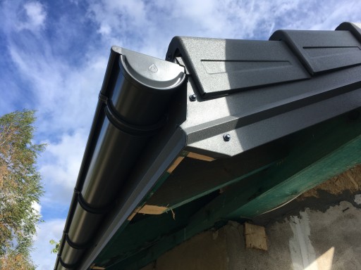 Pierwszy tego typu produkt na rynku wykonany z blachy, który pokonał ograniczenia technologii produkcji- stworzony jako jedna bryła, będąca dekoracyjnym wykończeniem bocznym blachodachówki modułowej.