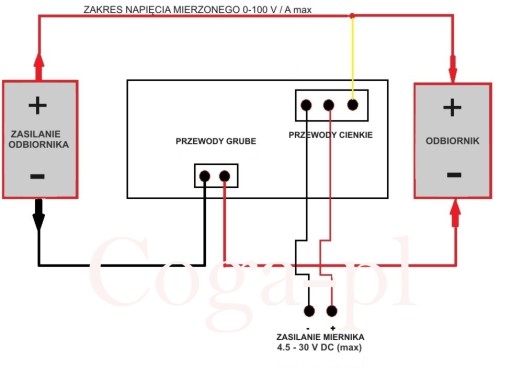 - czerwony to plus zasilania miernika