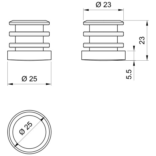 Ножка пластиковая с заглушкой для трубы диаметром 25 мм.