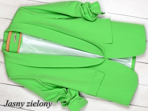 Porządnie wykonana, posiada podszewkę, delikatne poduszeczki w ramionach i klapy