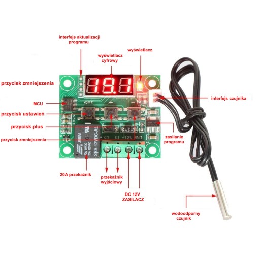 Moduł posiada odłączany termistor wodoodporny, który dokonuje pomiaru temperatury.