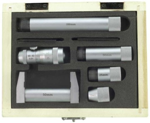 Podziałka chromowana na mat. Składa się z głowicy mikrometrycznej i odpowiednich tulei przedłużających. DIN 863.