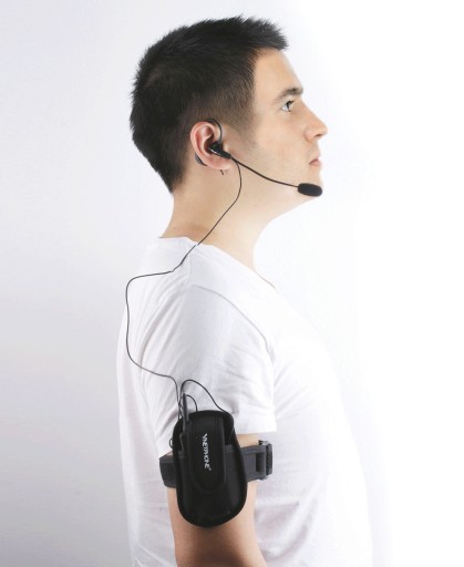 Moduł odbiorczo-nadawczy instalujemy w specjalnej opasce zakładanej na ramię.