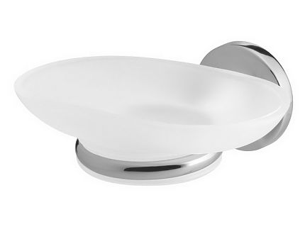 Mydelniczka z kolekcji ONTARIO. Mocowana do ściany za pomocą śrub. Wykonana ze znalu pokrytego chromem oraz mrożonego szkła.