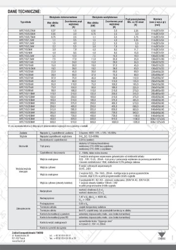 Moc silnika:1,5kW dla obciążenie stałopądowego i 2,2kW dla obciążenia wentylatorowego.