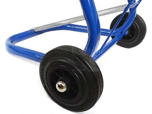 - jako jeden z nielicznych na rynku posiada wytrzymałe gumowe kółka, dzięki temu zapewnia komfortowe warunki pracy przy spinaniu ładunków rozmieszczonych na dużej powierzchni magazynowej,