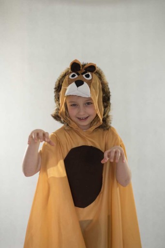Piękny strój lwa.Peleryna około 70 cm z boku otwory na ręce, a z tyłu uroczy ogonek.Wyprodukowano w Polsce.Rozmiar uniwersalny dedykowany dzieciom przedszkolnym i szkolnym.