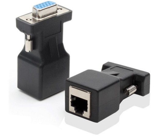 - Adapter pozwala na transmisję sygnału pomiędzy portami video VGA na odległość koło 20 metrów za pomocą kabli CAT5, CAT6 Ethernet