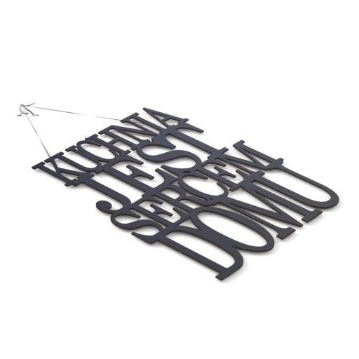 Do zamówienia (przy wyborze płyty hdf) dołączamy dwustronnie samoprzylepną taśmę piankową. Taśma nadaje się do użycia na gładką i czystą powierzchnię (większość ścian). Taśmę należy samodzielnie zamocować z tyłu napisów. Do trudniejszych powierzchni takich jak tynk strukturalny lub płytki - wycięte z płyty hdf napisy można mocować również w inny sposób - we własnym zakresie (np. na klej). Przy wyborze surowego drewna (sklejki) - taśma nie jest dołączana (mocowanie we własnym zakresie, np. na klej). Projekt jest jednoelementowy (wszystkie litery tworzą jedną całość) - można go zatem również powiesić np. na haczykach, gwoździku, sznurku itp.