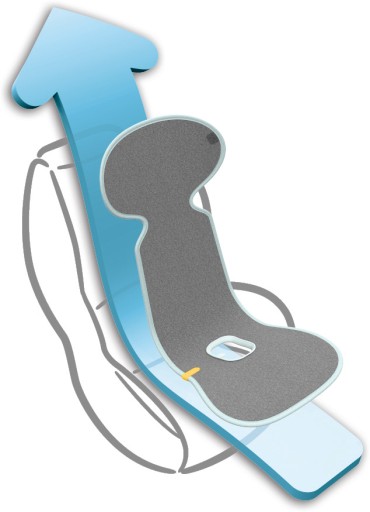 Miękki ochraniacz / wkładka do fotelików samochodowych z grupy wagowej 15-36 kg, który zapobiega nadmiernemu poceniu się dziecka a zarazem zabezpiecza fotelik samochodowy.