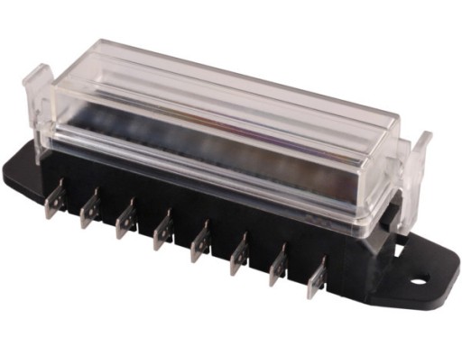 Obudowa mieści 8 bezpieczników typu UniVal (ATO/Płytkowy 19mm)