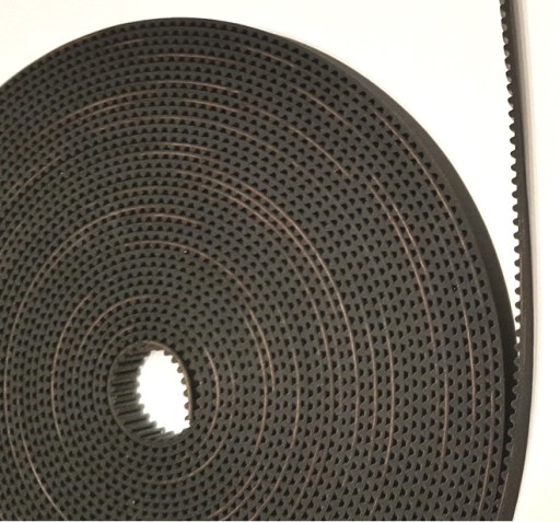 Pasek jest wykonany z czarnej gumy i wzmacniany włóknem szklanym, a profil zęba jest tak dobrany aby eliminować luzy (idealne przyleganie do zębatki w każdym momencie) i ograniczyć zużycie. Włókna szklane skutecznie zapobiegają rozciąganiu się paska podczas pracy.