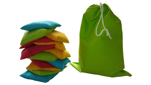 KOMPLET ZAWIERA 10 KOLOROWYCH WORECZKÓW ORAZ WOREK DO PRZECHOWYWANIA.