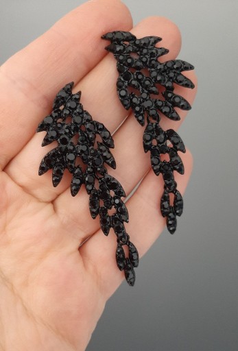 СЕРЬГИ ЧЕРНЫЕ КРЫЛЬЯ, ДЛИННЫЕ ЦИРКОНИИ, КРАСИВЫЕ