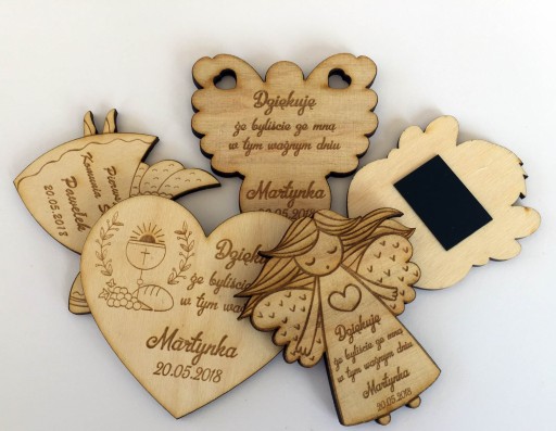 Chrzest oraz I Komunia Święta to bardzo ważne wydarzenie dla naszego dziecka oraz gości zaproszonych na uroczystość. Spraw, aby ten dzień zapamiętali na dłużej. Darując gościom drewniany magnes nie tylko dziękujesz za udział w uroczystość, ale również dajesz pamiątkę, która będzie im przypominać o tej chwili.