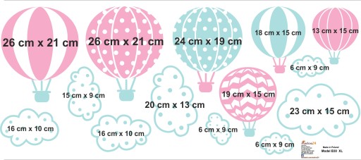 Poniżej wymiary i elementy naklejek wchodzących w skład zestawu