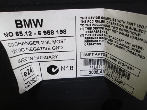 NR CZĘŚCI BMW : 6958198 / 6949697