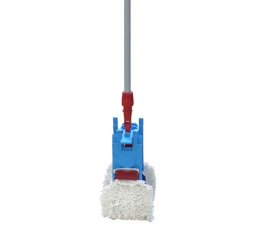 Mop z rodziny bezobsługowych, w którym nakładkę montujemy do stelaża za pomocą taśmy na tzw. klips. Posiada stabilny kij aluminiowy i stopkę o podwyższonej gramaturze, wykonaną z kompozytu odpornego na pęknięcia i chemię przemysłową. Mop świetnie nadaje się do sprzątania w lokalach komercyjnych, instytucjach publicznych jak i gospodarstwach domowych. Wykorzystywany jest zarówno przez profesjonalne firmy sprzątające jaki i gospodynie domowe.