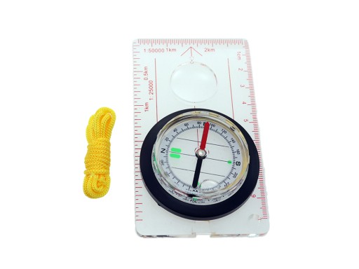 Wielofunkcyjny kompas idealny dla osób uprawiających biegi na orientację - oprócz podziałki na busoli i szkła powiększającego kompas posiada także bardzo przydatne linijki ułatwiające obliczenie dystansu w zależności od skali mapy: